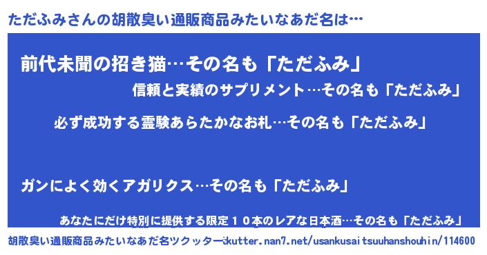 | 男性向けラノベタイトル風あだ名 | 『ただふみの憂鬱』『緋弾のタダフミ』 |