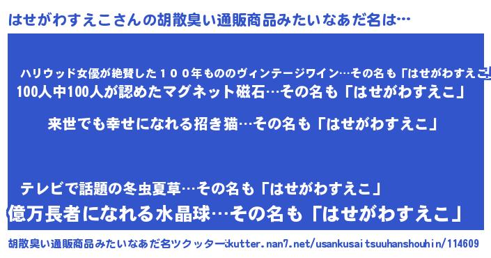 | 伝説のあだ名 | 『古より伝わる吟遊詩人はせがわすえこ』 |