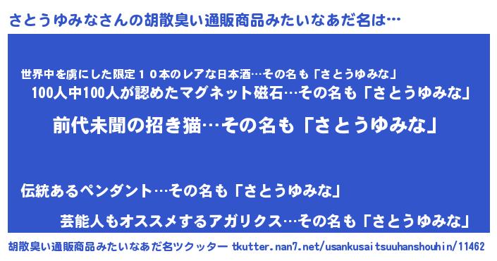 | 意味不明あだ名 | 『永久保存さとうゆみな』 |