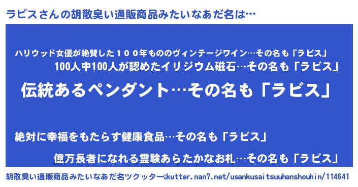 | 意味不明あだ名 | 『とにかく怪しいラビス』 |