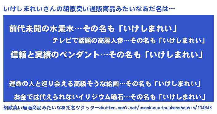 | 意味不明あだ名 | 『とにかく怪しいいけしまれい』 |