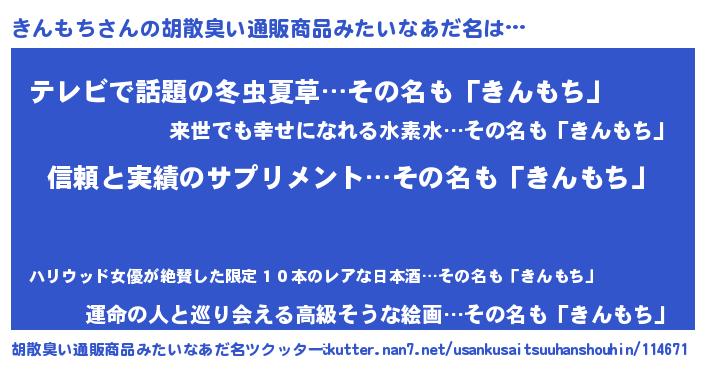 | 女子向けラノベタイトル風あだ名 | 『きんもちは平凡を望む』『闇のきんもち』 |