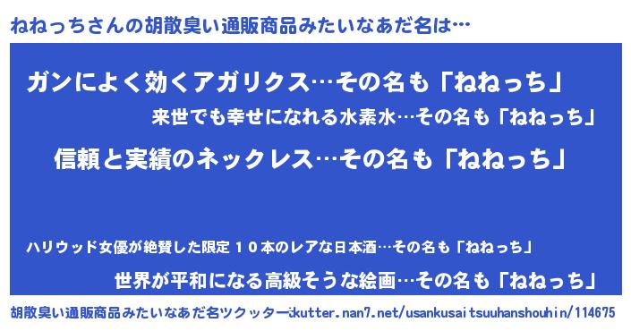 | 男性向けラノベタイトル風あだ名 | 『ネネッチスレイヤー』 |