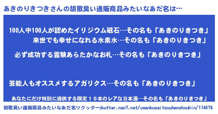 | ヒーロー風カッコイイあだ名 | 『スーパーアキノリキツキ』 |