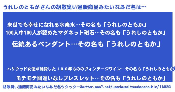 | ヘコむあだ名 | 『うれぷりん』『うれしのともか(爆)』 |