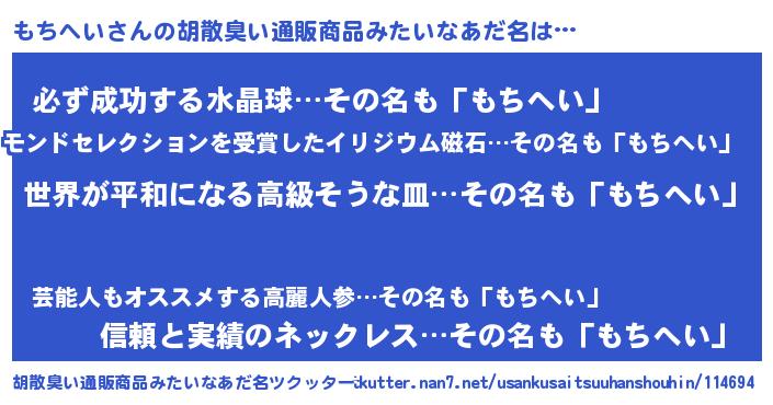 | 恥ずかしいあだ名 | 『もちっちょ』『プリティーもちへい』 |