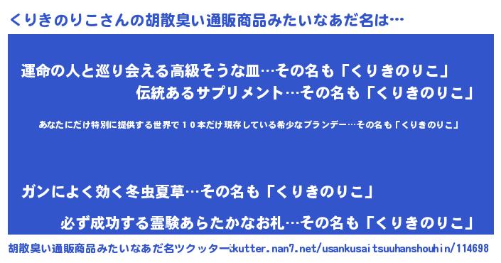 | 意味不明あだ名 | 『住所不定無職くりきのりこ(93歳)』 |