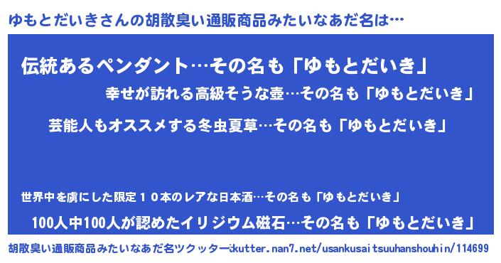 | ポケモン風あだ名 | 『ユモセウス』『ヒユモトダイキ』 |