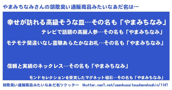| 恥ずかしいあだ名 | 『プリティーやまみちなみ』『やまっちょ』 |