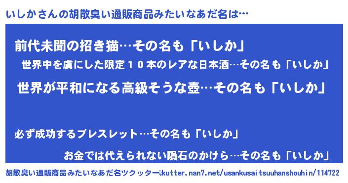 | 意味不明あだ名 | 『なめこ科いしか属』『永久保存いしか』 |