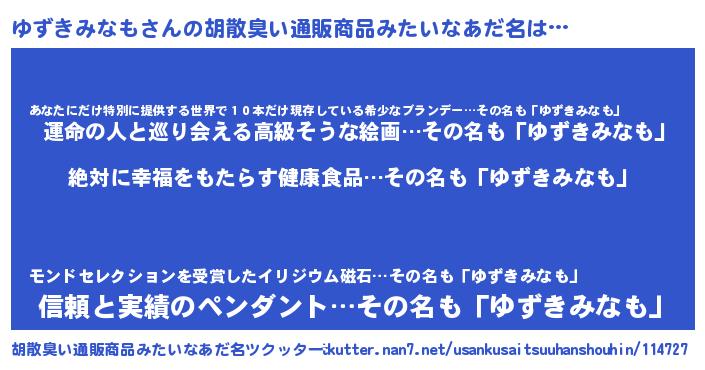 | ヘコむあだ名 | 『ゆずきみなも(笑)』『ゆずぷりん』 |