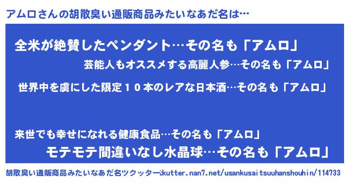 | 意味不明あだ名 | 『住所不定無職アムロ(40歳)』『自称アムロ』 |