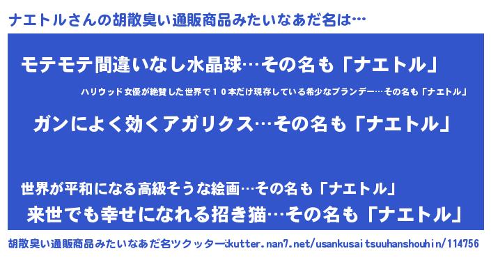 | 意味不明あだ名 | 『自称ナエトル』『ペロリンナエトル』 |