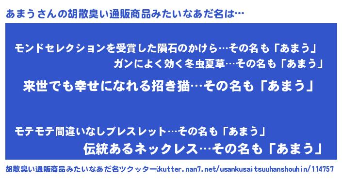 | ヘコむあだ名 | 『あまう(笑)』『あまぷりん』 |