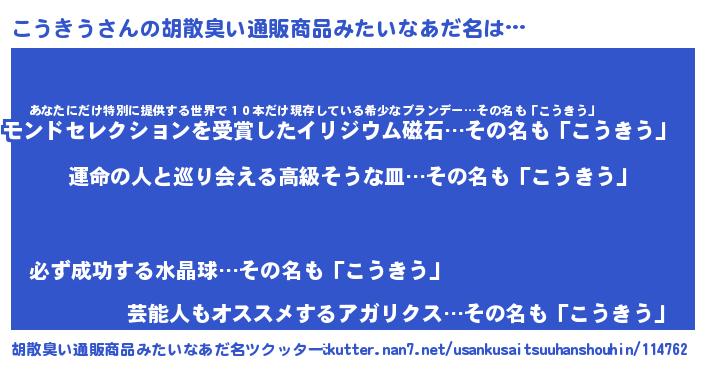 | 意味不明あだ名 | 『こうきうフォーエバー』『自称こうきう』 |