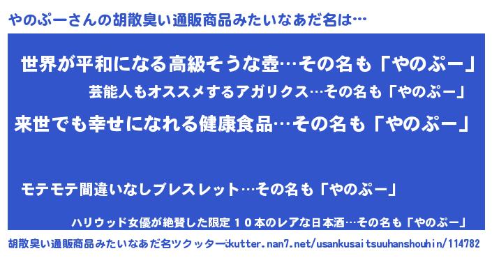 | 意味不明あだ名 | 『永久保存やのぷー』『自称やのぷー』 |