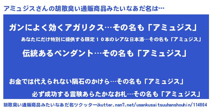 | 男性向けラノベタイトル風あだ名 | 『ダンジョンにアミュジスを求めるのは間違っているだろうか』 |