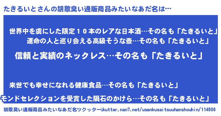 | 料理風あだ名 | 『たきるいとの豆乳スープ』 |