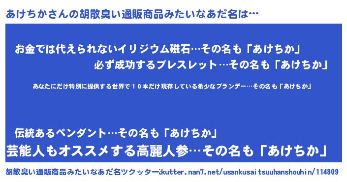 | 意味不明あだ名 | 『住所不定無職あけちか(81歳)』 |