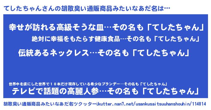 | 意味不明あだ名 | 『とにかく怪しいてしたちゃん』 |
