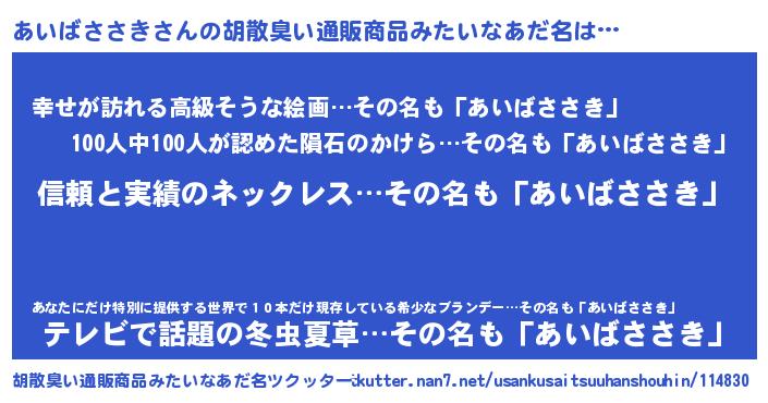 | 意味不明あだ名 | 『とにかく怪しいあいばささき』 |