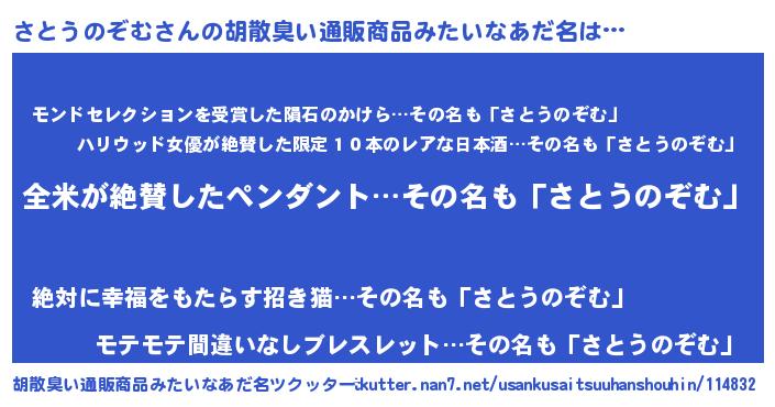 | 意味不明あだ名 | 『とにかく怪しいさとうのぞむ』 |