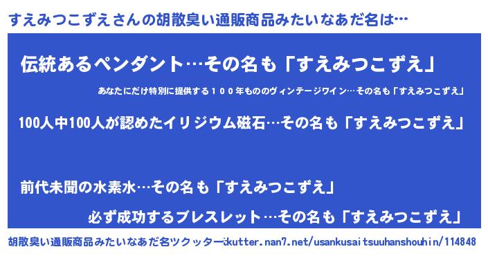 すえみつこずえさんの胡散臭い通販商品みたいなあだ名をツクッター!