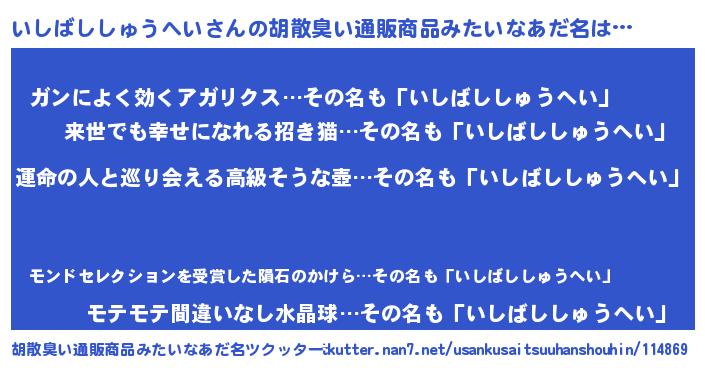 | 意味不明あだ名 | 『いしばししゅうへいフォーエバー』 |