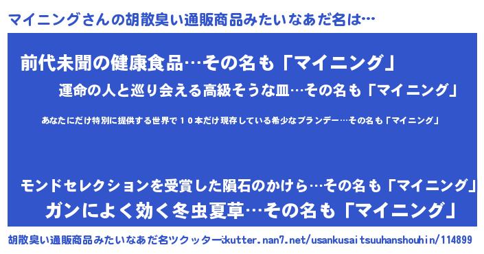 意味不明あだ名 | 『住所不定無職マイニング(95歳)』 |