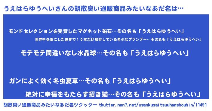 | ヘコむあだ名 | 『うえもー』『うえはらゆうへい(笑)』 |