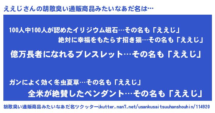 | 男性向けラノベタイトル風あだ名 | 『エエジアートオンライン』 |