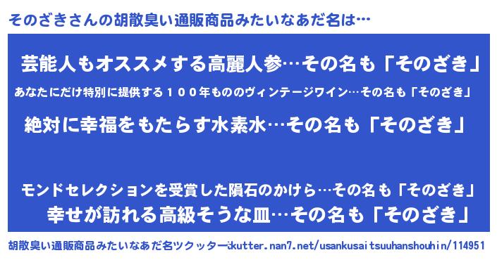 | 意味不明あだ名 | 『永久保存そのざき』『自称そのざき』 |