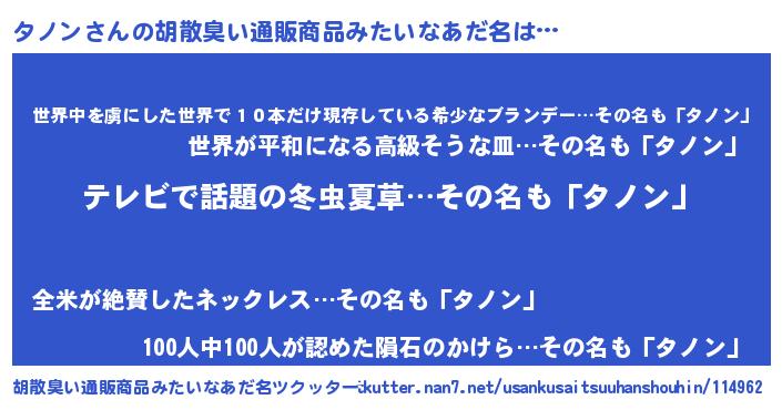 | 意味不明あだ名 | 『自称タノン』『住所不定無職タノン(84歳)』 |