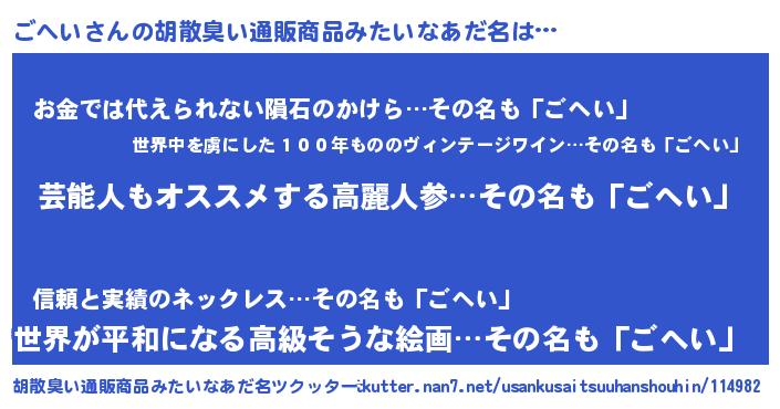 | 意味不明あだ名 | 『自称ごへい』『眠気覚ましガムごへい味』 |