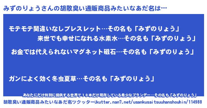 | ヘコむあだ名 | 『みずふぇ~』『みずのりょう(笑)』 |