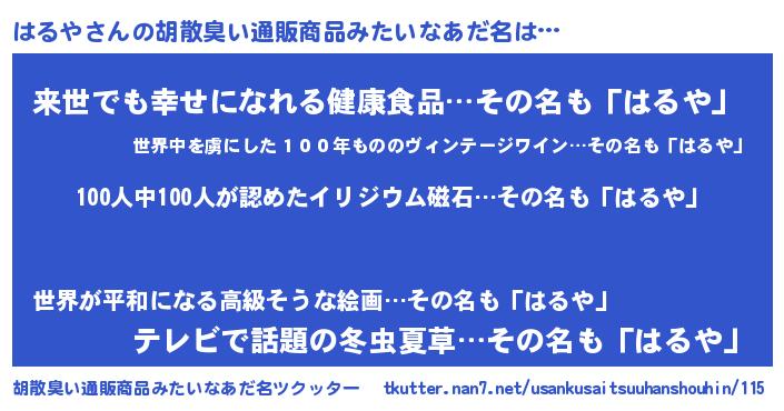 | ヒーロー風カッコイイあだ名 | 『正義の使者はるや』『ネオハルヤ』 |