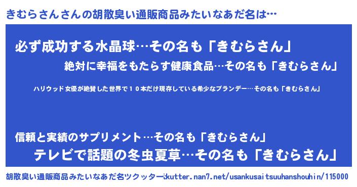 | ヘコむあだ名 | 『きむもー』『きむらさん(爆)』 |