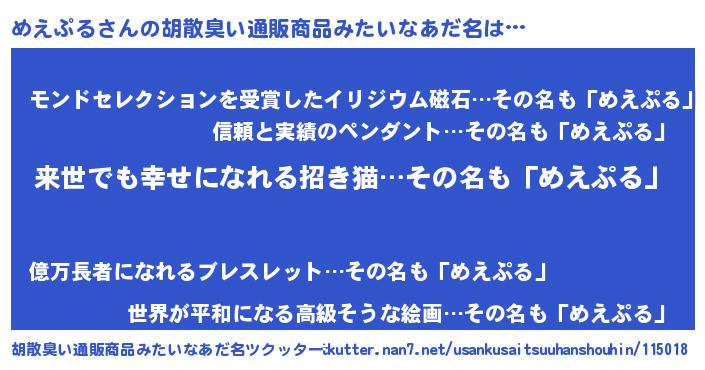 | ヒーロー風カッコイイあだ名 | 『ネオメエプル』『愛の使者めえぷる』 |