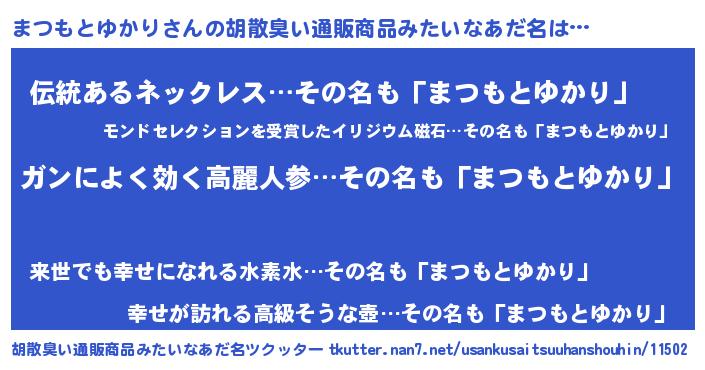 | 意味不明あだ名 | 『自称まつもとゆかり』 |