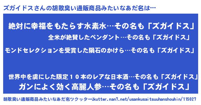 | 可愛いあだ名 | 『ズガちゅっちゅ』『ズガイドスママ』 |
