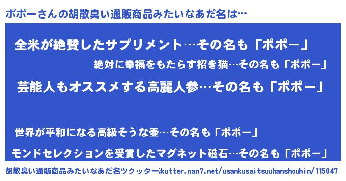 | ヘコむあだ名 | 『ポポお』『ポポー(震え声)』 |