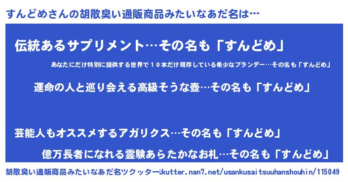 | 意味不明あだ名 | 『すんどめフォーエバー』 |