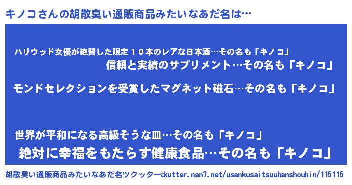 | ヘコむあだ名 | 『キノコ(笑)』『キノっ子』『つくし』 |