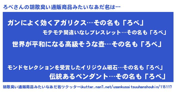| 意味不明あだ名 | 『ろべフォーエバー』『自称ろべ』 |