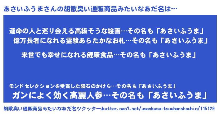 | ヘコむあだ名 | 『あさいふうま(笑)』『牛乳』 |