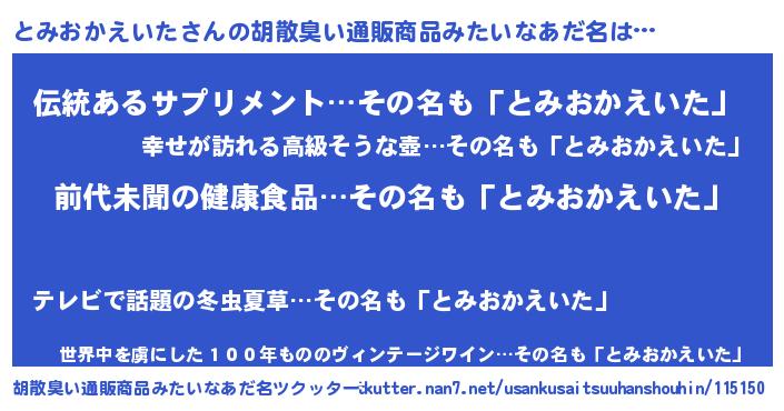 | ヘコむあだ名 | 『とみおかえいた(苦笑)』『とみ太郎』 |