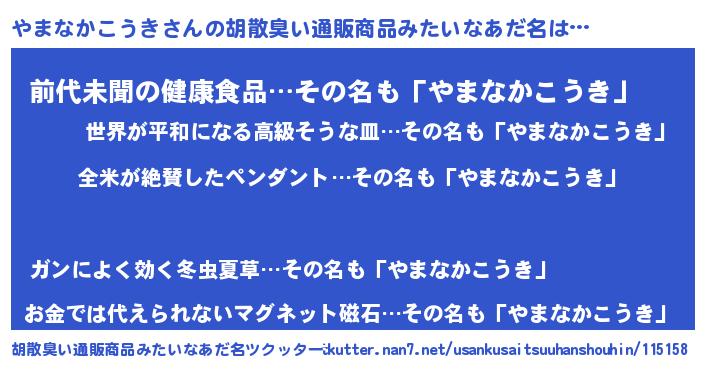| 意味不明あだ名 | 『とにかく怪しいやまなかこうき』 |