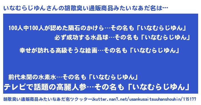 | 肩書あだ名 | 『いなむらじゆん総理大臣』 |
