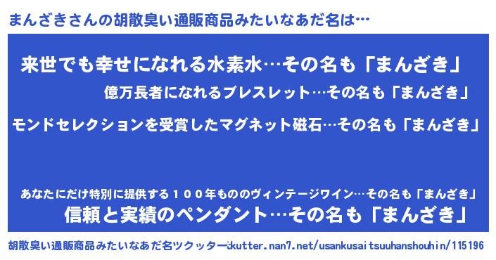 | ヘコむあだ名 | 『まんざき(笑)』『まんぷりん』 |