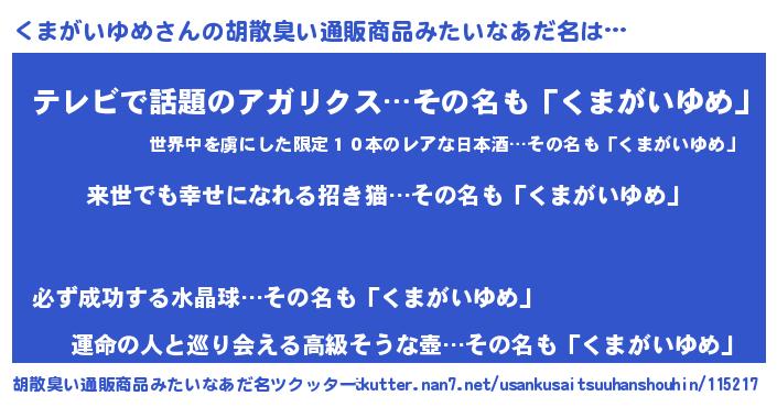 | 意味不明あだ名 | 『永久保存くまがいゆめ』 |